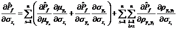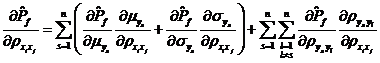 與獨立變量情況類似,變量相關(guān)情況下的可靠性試驗靈敏度定義為失效概率對基本變量分布參數(shù)的偏導(dǎo)數(shù),以