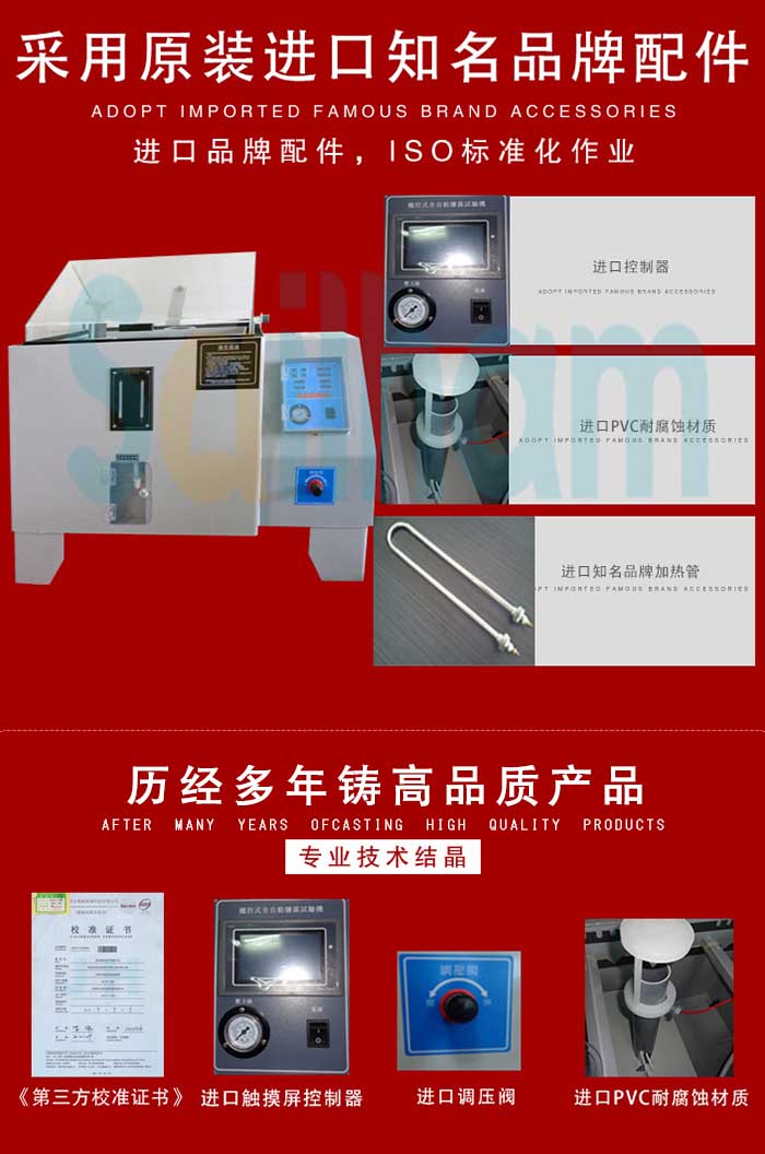 10. 特制噴嘴(由特種玻璃制成,霧氣擴(kuò)散均勻落于試片,連續(xù)使用4000小時并保證無結(jié)晶鹽阻塞)。